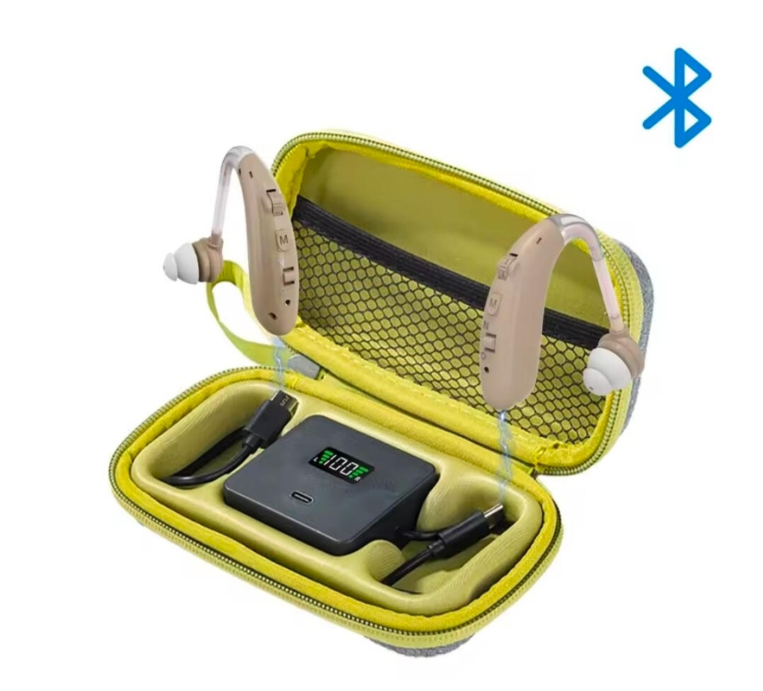 Bluetooth earbuds with medical-grade behind-the-ear form factor to mimic standard hearing aids. The clear acoustic tubing and neutral housing provide a professional alibi, allowing them to pass visual inspections and remain socially invisible in settings where standard headphones are restricted.